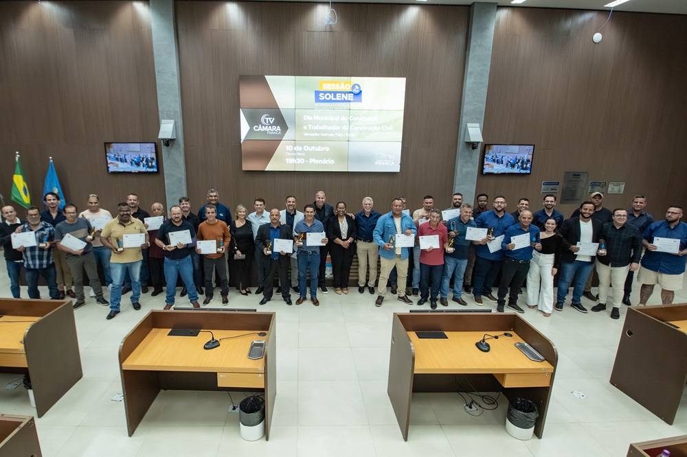 Em mais uma noite de casa cheia, a Câmara Municipal de Franca reforçou sua parceria com os diversos setores produtivos da cidade, desta vez prestando homenagem aos construtores e profissionais da construção civil.