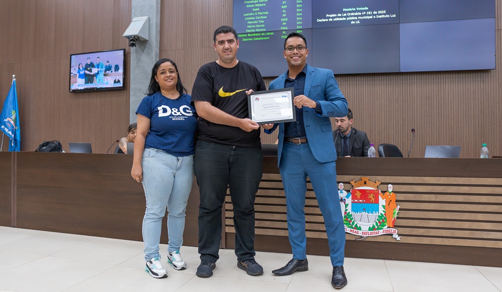 A Câmara Municipal aprovou por unanimidade, durante a 45ª Sessão Ordinária realizada nesta terça-feira, 11 de novembro, a Moção de Aplausos nº 186/2025, de autoria do vereador Walker Bombeiro da Libras (PL), em homenagem a Bruno de Paula Izaías pelo ato de bravura em salvar uma vítima de engasgamento. O caso ocorreu em uma padaria da cidade.