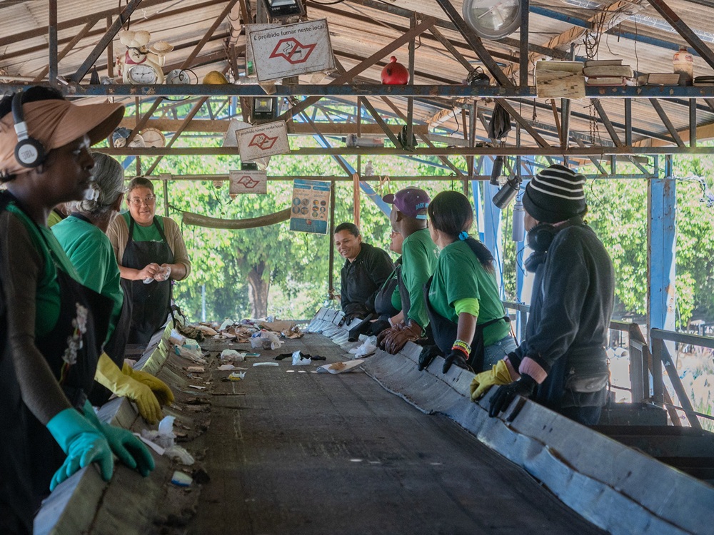 O processo na Cooperfran começa com a descarga dos recicláveis, seguida da triagem inicial feita pelos cooperados. Depois, uma segunda verificação garante que nenhum material não reciclável passe despercebido. Em seguida, o material é prensado e encaminhado para comercialização. “Hoje nós somos 55 famílias que dependem daquilo que a sociedade faz o descarte”, explica Diana.