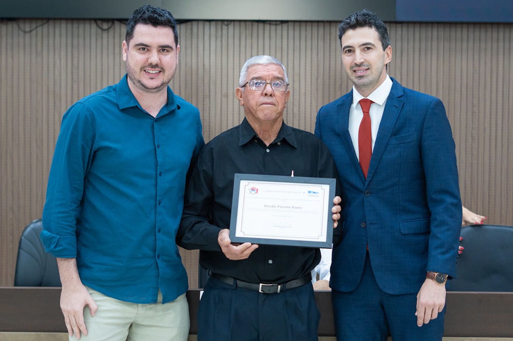 Em agradecimento, Percílio Ferreira Soares utilizou a tribuna para se manifestar. Ele agradeceu aos presentes, aos vereadores, a Deus e à família, e relembrou o início de sua trajetória no serviço público. “Entrei na prefeitura municipal na prefeitura de Franca em 1 de Abril de 1975, e até hoje presto serviços”, afirmou.