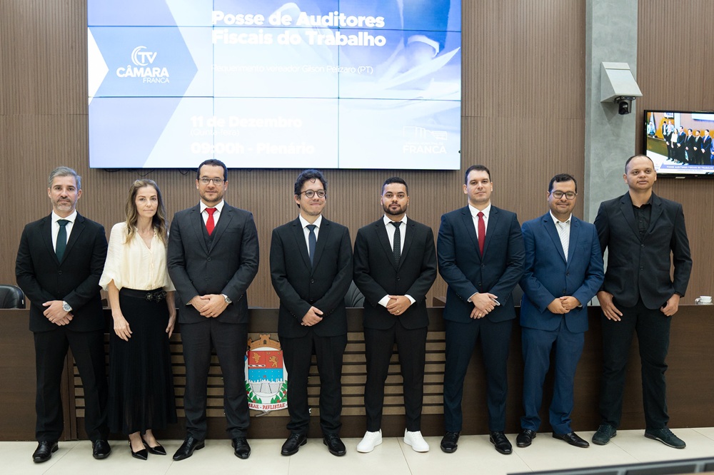 Franca recebeu, nesta quinta-feira, oito novos auditores-fiscais do Trabalho, integrando o maior ingresso da carreira no país. A cerimônia de posse foi realizada no plenário da Câmara Municipal e marca o reforço da fiscalização trabalhista na região.